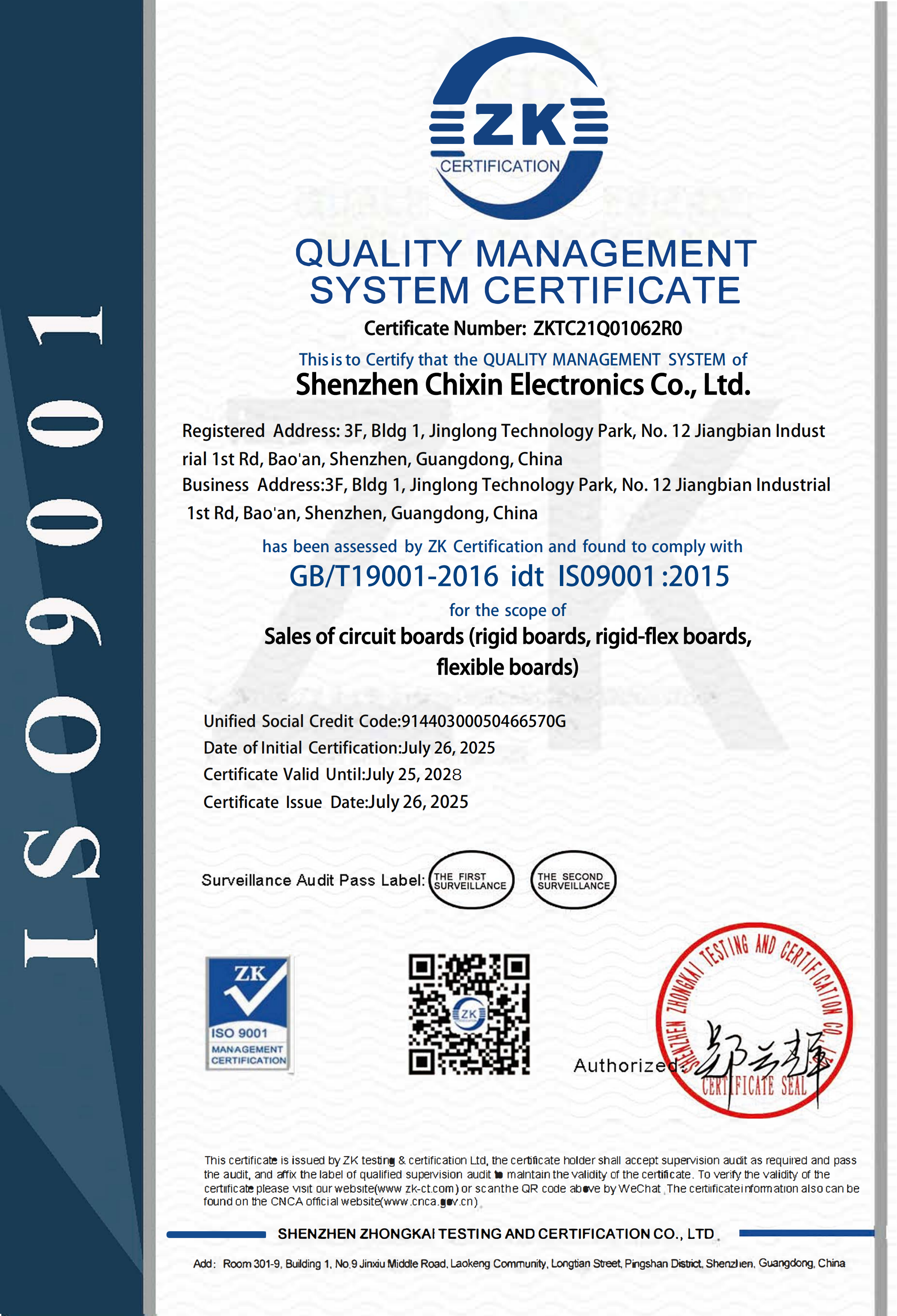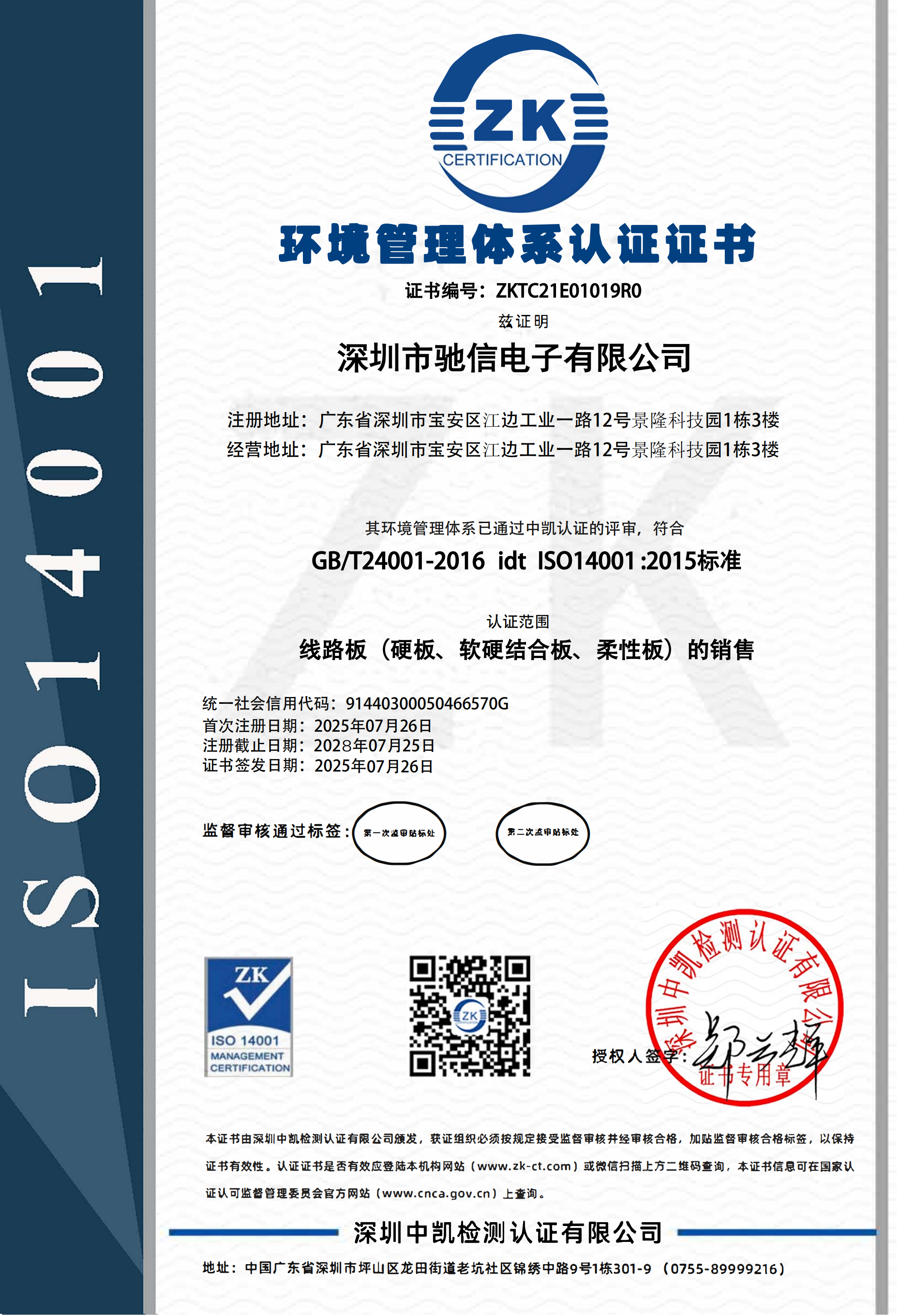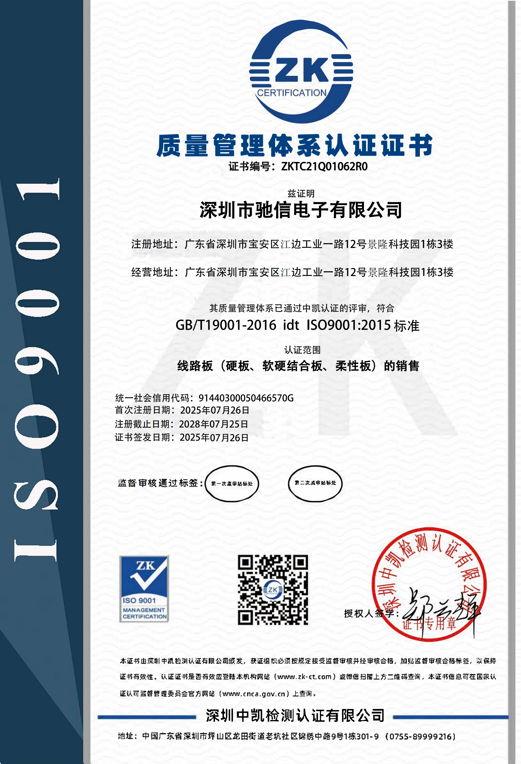 深圳市驰信电子有限公司成立于2012年,是一家专业研发、制造FPC软板、PCB硬板以及软硬结合板并可提供SMT贴片、DIP插件等一站式服务的高科技企业,我们的产品广泛应用于汽车电子、通信设备、新能源、医疗电子、工控设备、智能家居、消费电子、安防设备、AI人机交互等多个领域,为客户快速提供切实可行的一站式解决方案。